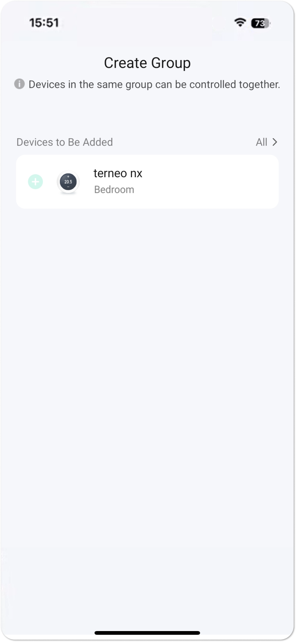 Group control — easier than managing each device separately If you have several thermostats, control them as one. Create a group in the device settings ("Create group") and turn heating on or off throughout the entire home with a single tap.